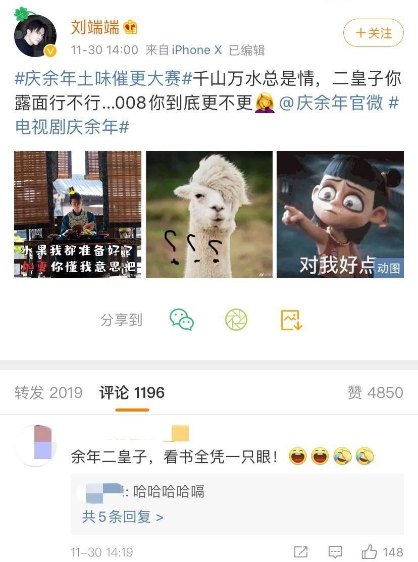 小扒还记得,一开始刘端端是被吐槽得最多的那个,只因为他的造型太杀马特了,而且还神似刘海遮住半张脸的羊驼。粉丝都在他的微博底下评论“余年二皇子,看书全凭一只眼”,实在是令人忍俊不禁。