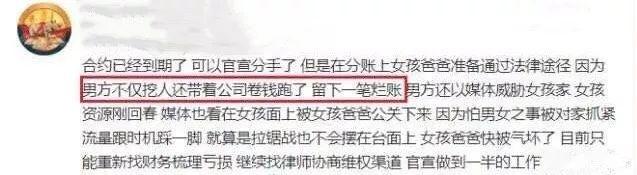 该知情人士称二人分得并不友好,疑似有经济纠纷,可能会通过法律途径解决。