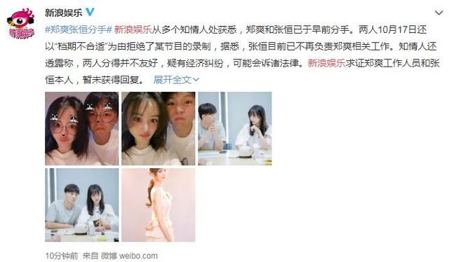 10月17日,郑爽与张恒两方都以“档期不合适”为由拒绝了某节目的录制。