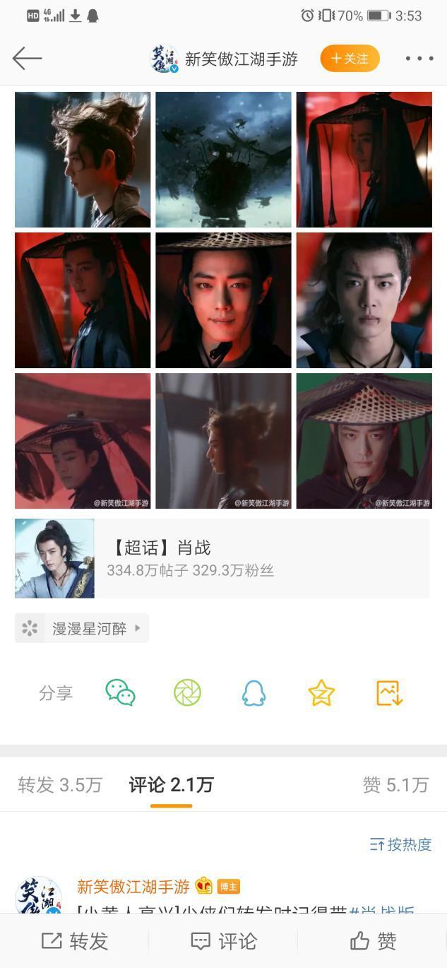 从《陈情令》中爆红的肖战虽然不是科班出身,但他在剧中的表现也是可圈可点。从少年羡演到老祖羡毫无压力。但在代言《新笑傲江湖》手游中,肖战饰演令狐冲,又爆出神秘剧照,饰演神秘人物,黑化后的他,眼神气质完全换了一个人,令人十分惊艳。