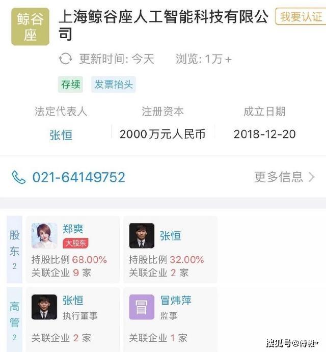 从两人公司的状况可知,郑爽已经退出了合开公司"鲸谷座"的大股东席位,而张恒带着原班人马组建了新的公司。这意味着,郑爽之前出资的一千万完全打了水漂,这个结果不管换成谁来说,内心肯定都是无法接受的。
