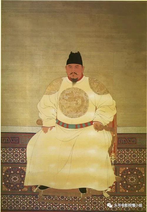 中国国家博物馆藏朱元璋坐像,穿白色龙袍,戴黑色纱帽,下巴向前突出,脸上布满黑痣,束玉带,穿云头履,勾线及画工,纸张质地皆为明朝作品。