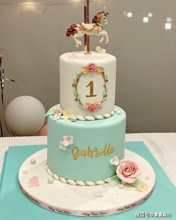 看来平时在家里的Gabrielle可没少听王祖蓝给她讲童话故事,整个生日的蛋糕也是选择了双层的童话蛋糕,色调是由浅绿和白色组成。最上面位置就是一匹快乐奔跑的马。