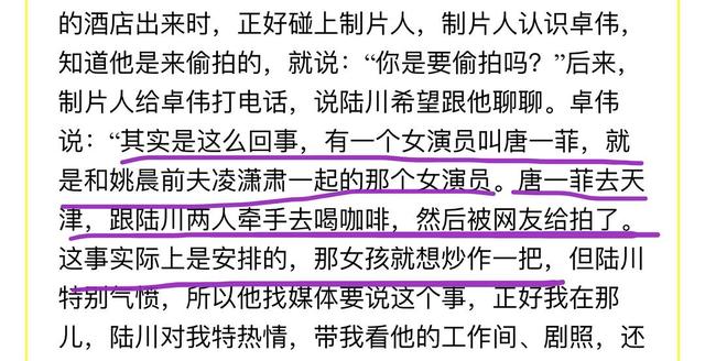 不过,卓伟在接受《三联生活周刊》采访时爆料,唐一菲曾想借陆川炒作一把,结果陆川很愤怒。