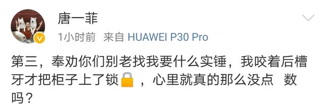 唐一菲又强调了几点,第一坚称自己没有小号。