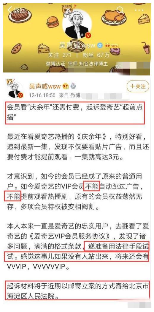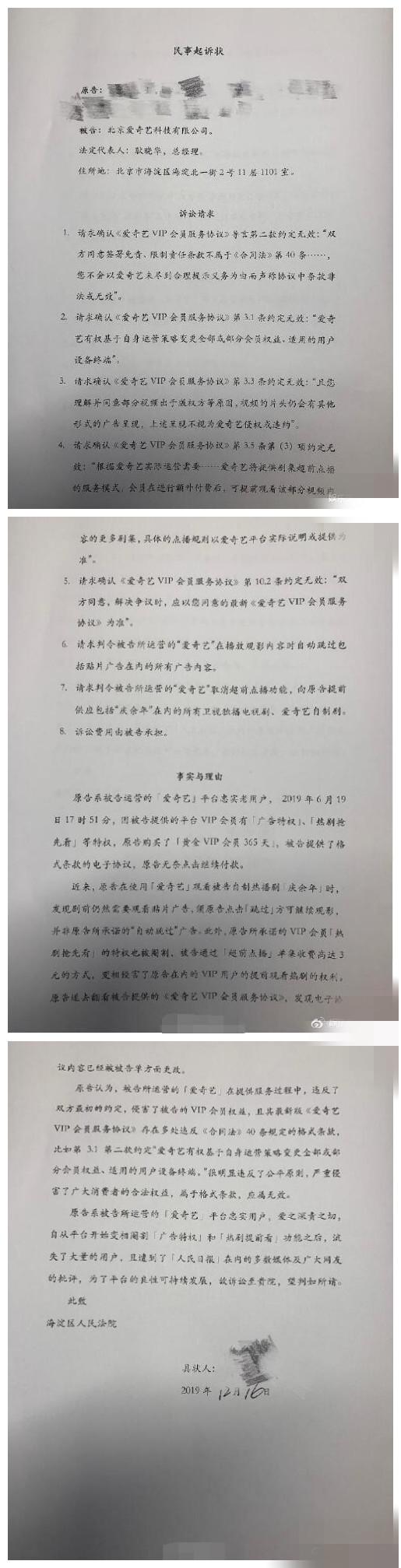 资深律师粉丝3页诉状把VIP付费平台告上法庭,字字珠玑胜券在握;爱奇艺被资深律师粉丝告上法庭,3页诉状铿锵有力胜券在握 网友:带上腾讯!
