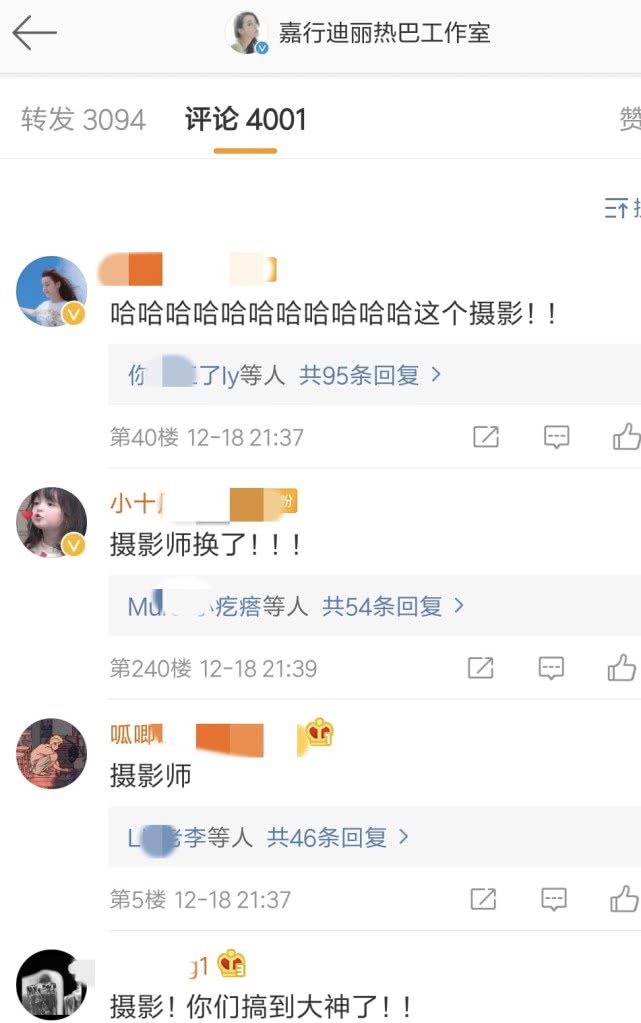 艺人的粉丝也开始在工作室的微博下面表示不满,看看别人家的摄影师。可是,迪丽热巴就请到了这个摄影师,也同样给她拍了一组照片,只不过却没有给欧阳娜娜拍的那么惊艳,但还是好看的,更重要的,是有想法的,所以粉丝一看见这个摄影师的名字都纷纷表示让工作室把这个摄影师给留住,往后迪丽热巴的图应该也就会提高一个档次了。