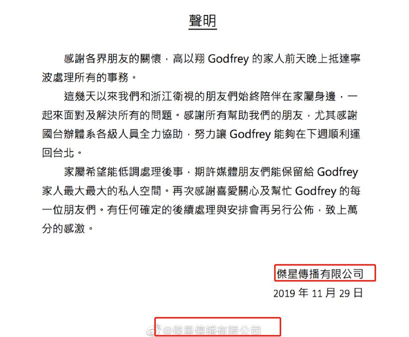 还有网友表示,希望大家不要被分散注意力纠结经纪公司的声明。甚至该声明的内容破绽百出引起网友的怀疑,称高以翔公司一直用繁体字,也没有盖章,连公司名称都“傑星”都写成了“杰星”。