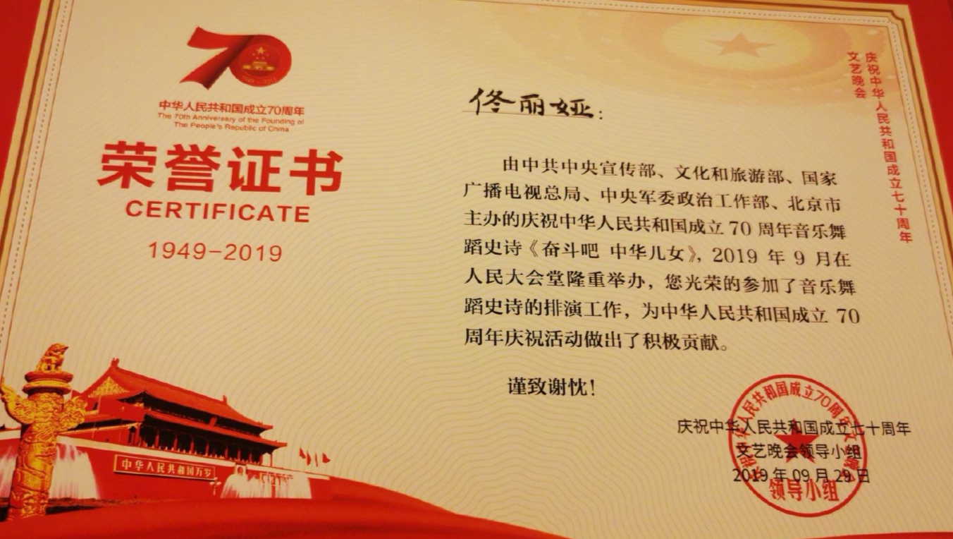 不得不提的是,丫丫参加的的主流活动真的不少,之前跟访问团去朝鲜演出,后来还出演了七十周年文艺晚会《奋斗吧 中华儿女》、观礼70周年阅兵,这次澳门回归20周年晚会也有演出,还有独舞片段。