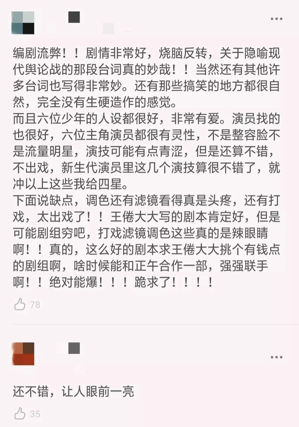 但是别忘了这部剧的编剧是王倦啊,看着七斋六位养眼的少年们过关斩将完成一个个烧脑的任务,抽丝剥茧查明真相,但是永远别想猜到剧情下一步的发展,高能反转让人欲罢不能,台词精妙让人上头,每个反转都震惊观众,反正小扒是跪着看完这部剧的,给王倦大大献上膝盖。