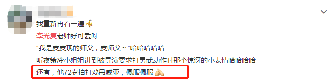 这样的年龄还未息影,甚至为了演戏尝试很多年轻人都吃不消的威亚,不得不让人称赞一句“老艺术家实至名归。”