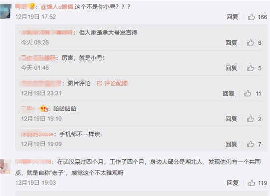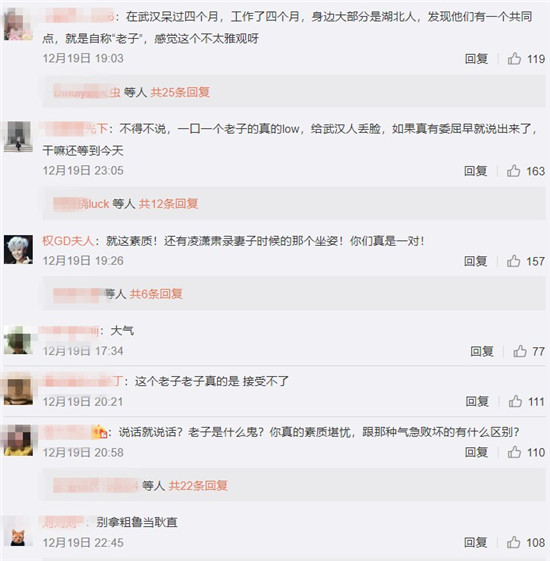 面对那么多的网友,你跟说自称“老子”?这素质,难怪有网友直接回:我真的也觉得蛮丢脸……不希望大家就这个误会武汉。老子跟熟的人用,也有不用的,但是有一说一,确实不雅观。所以除了很好的朋友,都不会轻易使用。我代表不了武汉,所以希望大家理性看待,欢迎大家来武汉旅游!