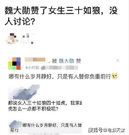 魏大勋自己也没少为这个绯闻“添油加醋”,敏感时刻微博突然点赞“女人三十如虎”也不知道是什么神仙操作。虽然后来工作室澄清是系统问题,但是这个说法却没能得到大家的认同。