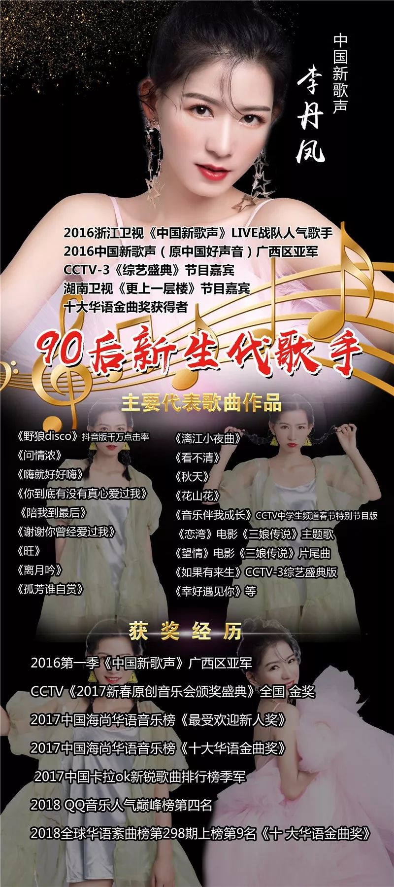 记者了解到,李丹凤作为九零后新生代歌手,中央电视台嘉宾歌手、2016中国新歌声广西区亚军、十大华语金曲奖获得者、中国海尚华语金曲榜最受欢迎新人奖,湖南卫视节目嘉宾,今年以来,自从上半年在《湖南卫视》录制《更上一层楼》栏目节目播放后,下半年也录制了好几期广东卫视的《星路天下》《音乐旅游》节目,每一期节目导师不一样,其中导师有黄绮珊、陈楚生、江映蓉、牛奶咖啡等等,至今节目还在录制中。同时,她还被聘请为广东电视台少儿春晚的导师,湖南电视台超级靓声的导师。