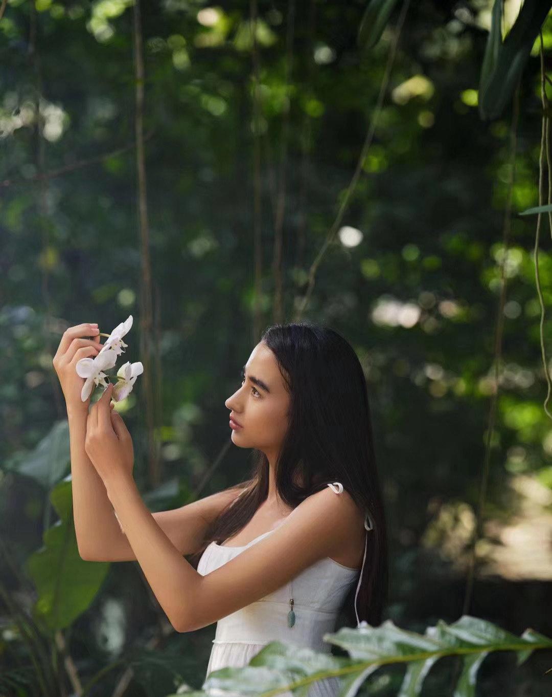 可能是成长环境不同养成的独特气质,李宛妲在演绎一些自然元素的时尚作品时格外有灵气。