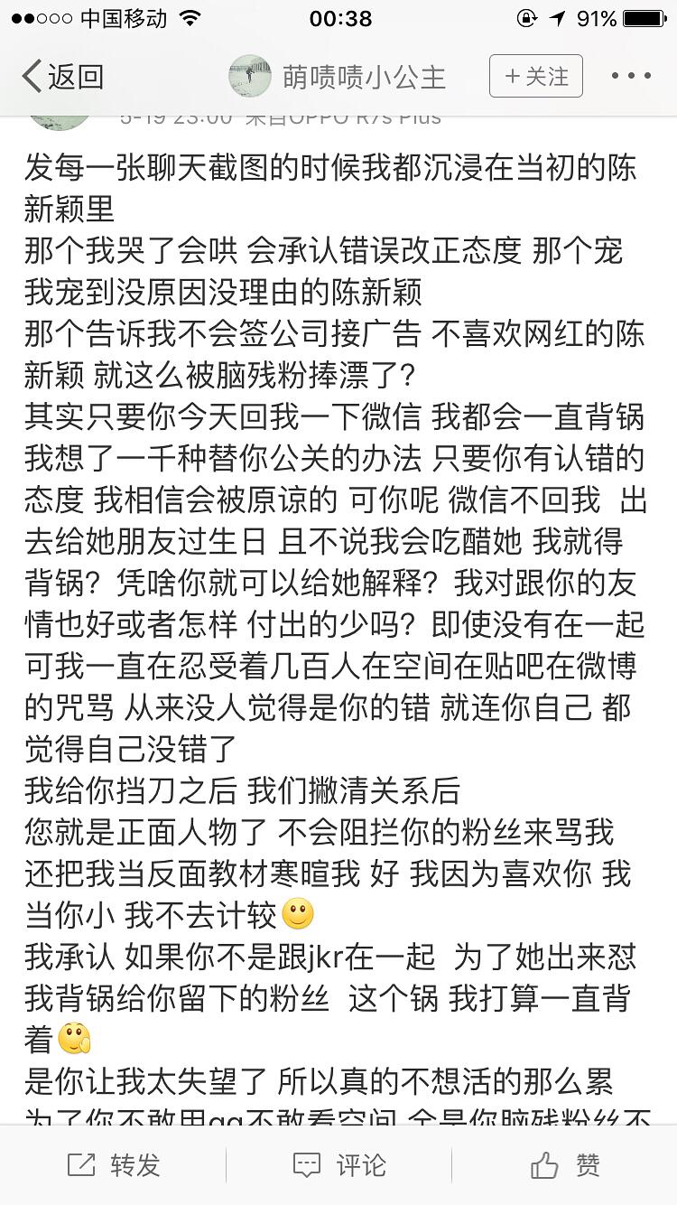 还有疑似前女友跳出来爆料说陈新颖红了之后,为了网红女友抛弃自己的渣男行为,哭诉她帮其建了粉丝群管理后援会,结果最后反被踢群。