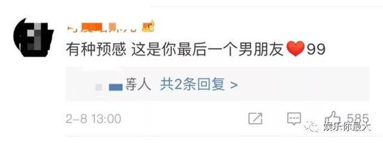 粉丝也对这段感情比较看好,说有预感这是她最后一个男朋友。