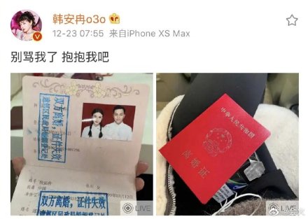 这次的热搜,源于今天一大早她在微博晒出了“离婚证”,还两次请求网友不要骂她,看样子是受了很大的委屈,不过随后又秒删。