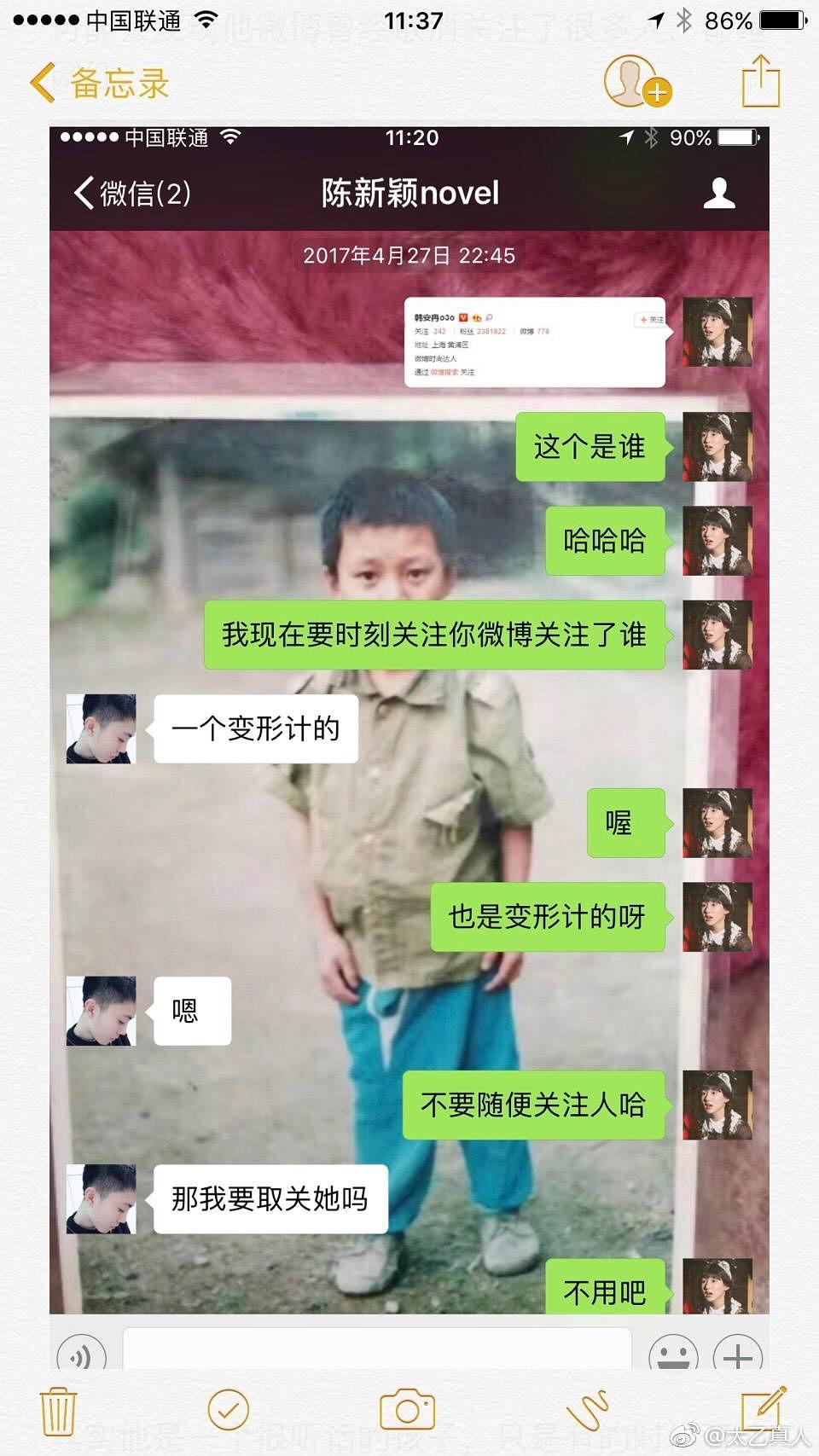 也有一位疑似前经纪人,爆料称自己曾经也极力劝说陈新颖远离网红圈,还专门截图问对方为什么要关注韩安冉哈哈哈。不过貌似两人的合作最后黄了,这个经纪人也被陈新颖拉黑了。