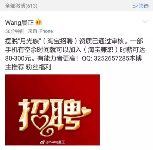 前年,他发布了淘宝兼职刷单的一个广告,有一位粉丝因为信任他,加上急需用钱,就加了他说的QQ号,结果被骗走了3万块钱。
