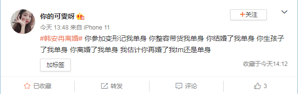 原标题:韩安冉结婚生娃离婚是开的8倍速