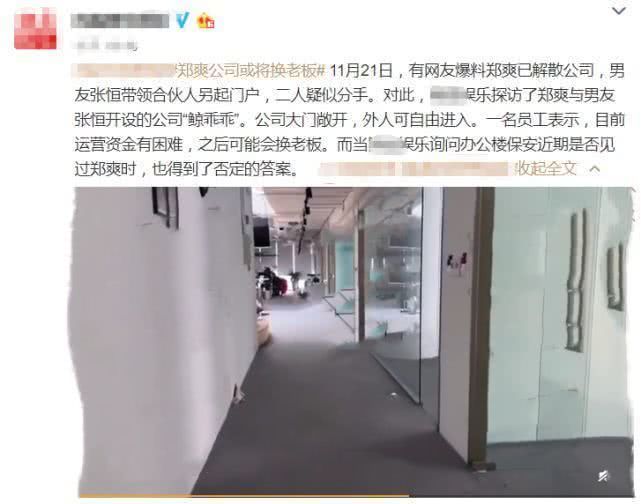 郑爽与张恒分手传闻也由来已久,郑爽此前为张恒投资的公司也早已关停,公司解散还有网友扒出张恒早已把研究成果拿走自己又跟朋友合开了公司。不少人猜测郑爽在此次恋爱中被骗的很惨,但当事人并没有对此给出过公开的回应。