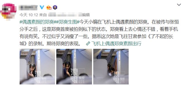 原标题:郑爽被传分手后在飞机上被偶遇,不受影响素颜超美不停微笑心