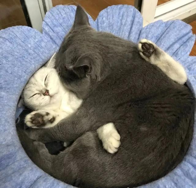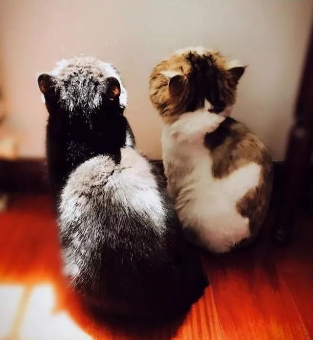 最开始的时候他养了一只叫坨坨的猫,后面又给坨坨找了个妹妹,它们兄妹在一起的样子实在太温馨。