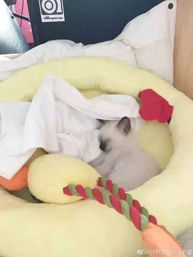 因为工作太忙了不能经常陪伴它们,担心猫咪会不熟悉自己,于是就在它们的窝里放了一件自己的衣服,让猫咪能够记住自己的气味。