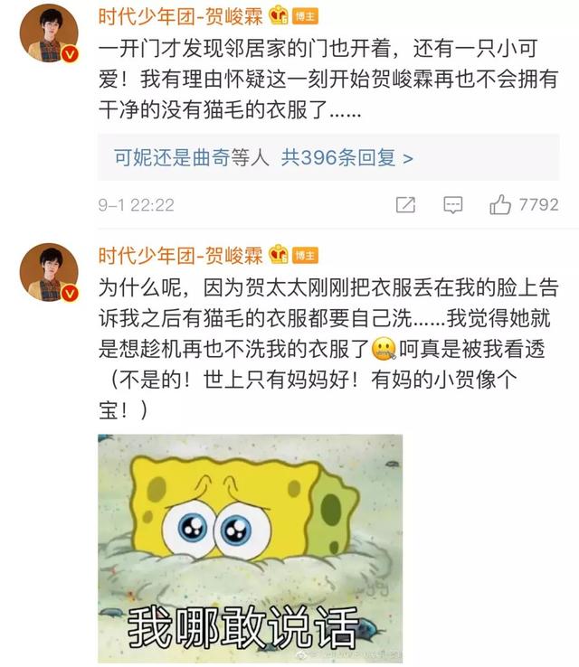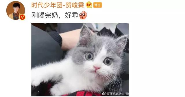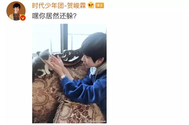 翻看贺峻霖的微博,没想到唱跳俱佳的贺峻霖,竟然也是个“铲屎官”,他的猫咪名字叫富贵。