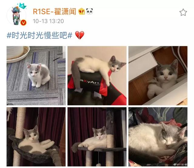 在R1SE刚刚成团不久时,翟潇闻在微博晒出了一组照片,他在车上抱着一只小猫,还让大家给它取个名字。
