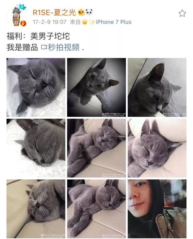 同样作为养猫大户的夏之光,经常在微博晒出猫咪的照片。