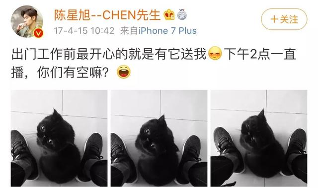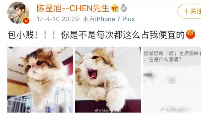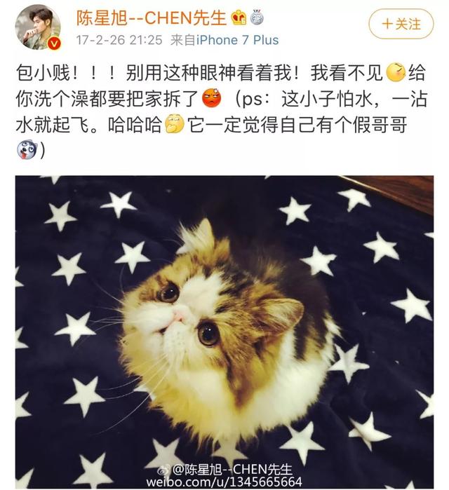 生活中的陈星旭,是一个非常有爱心的人,不折不扣的猫奴,经常在微博上晒猫的照片。
