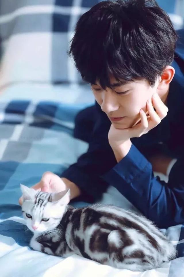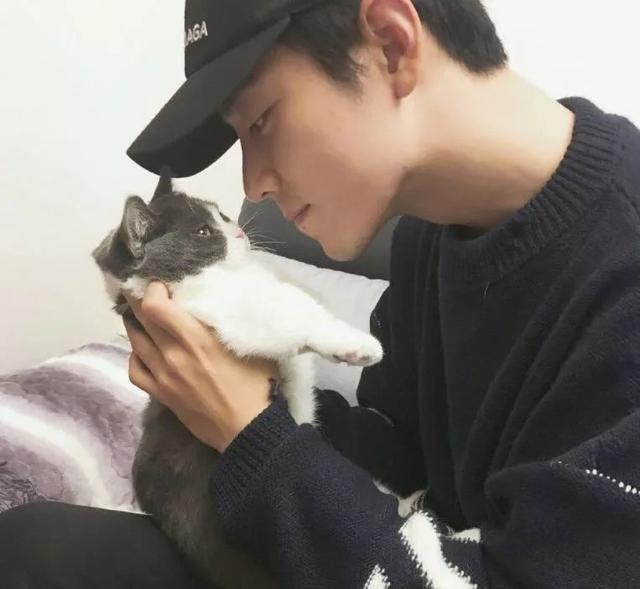 肖战也是那种看见猫就要撸的男生,从他吸猫的照片可以看出,他的眼神中充满了宠溺。