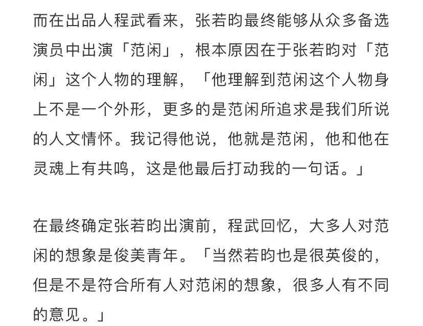 《庆余年》的出品人程武也对张若昀的理解能力表示认可。