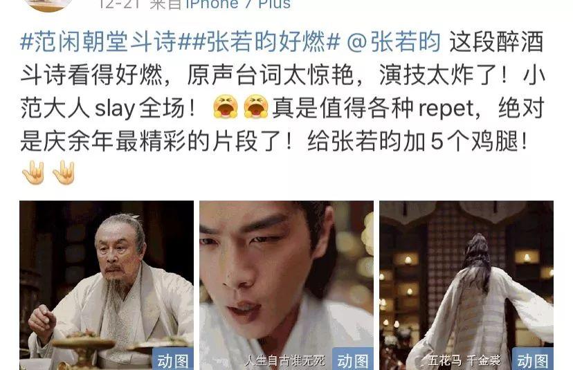 关于台词,范闲在剧中有两处高光时刻,第一处,是27集那段被网友吹爆天的朝堂醉酒斗诗。