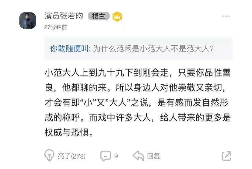 昨天张若昀去虎扑和网友一起侃剧,基本上处于有问必答的状态,每条回复都非常有梗。