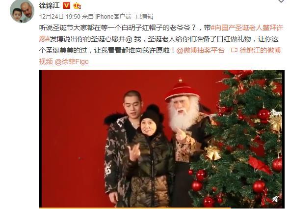 向来低调又谨慎的徐锦江,也难得愿意在这个时候出来蹭一下热度,活跃一下气氛。他们一家三口还特意出来录制了一段视频。视频里,徐锦江化身为可爱的圣诞老人,他祝大家不加班,而且要一直心想事成。
