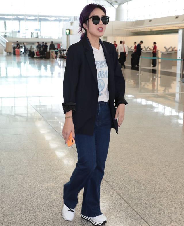 黑色的西装外套搭配一件T恤衫,下半身就是一条牛仔裤了。混搭在一起还意外的挺好看的呢,化了妆之后显得更加的精致,在她的脸上根本看不出来苍老的痕迹了呀。