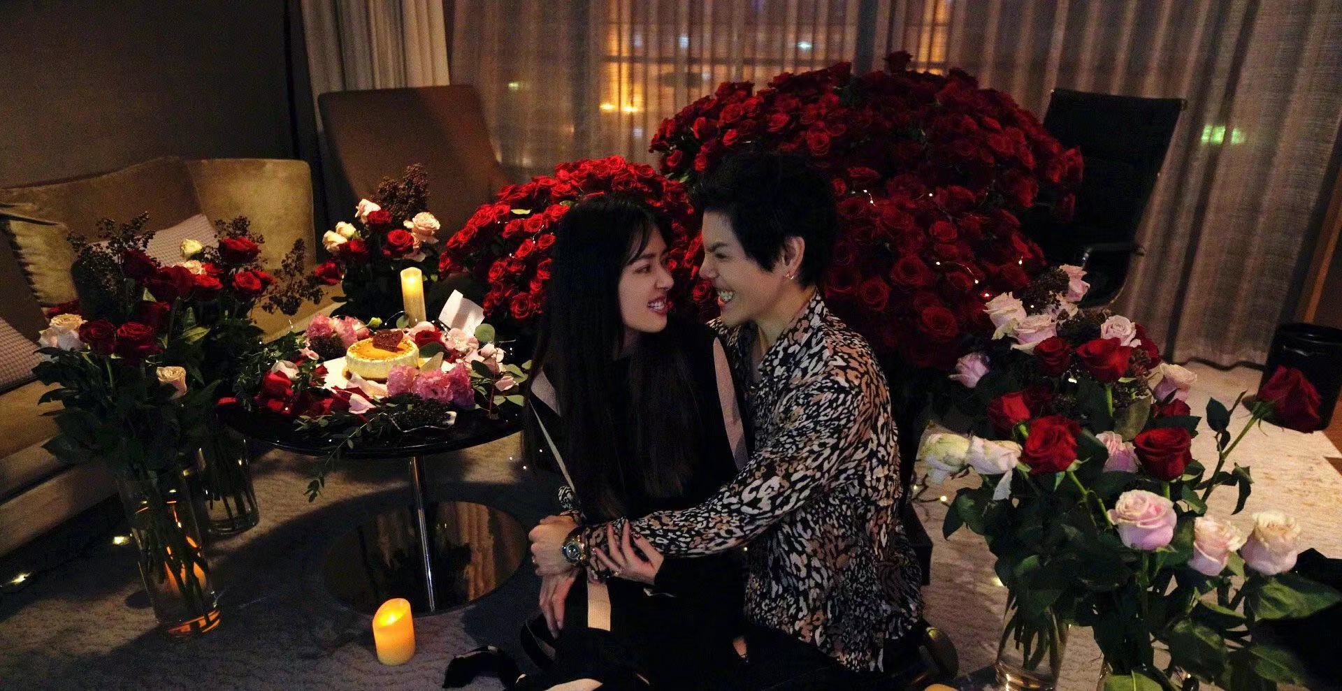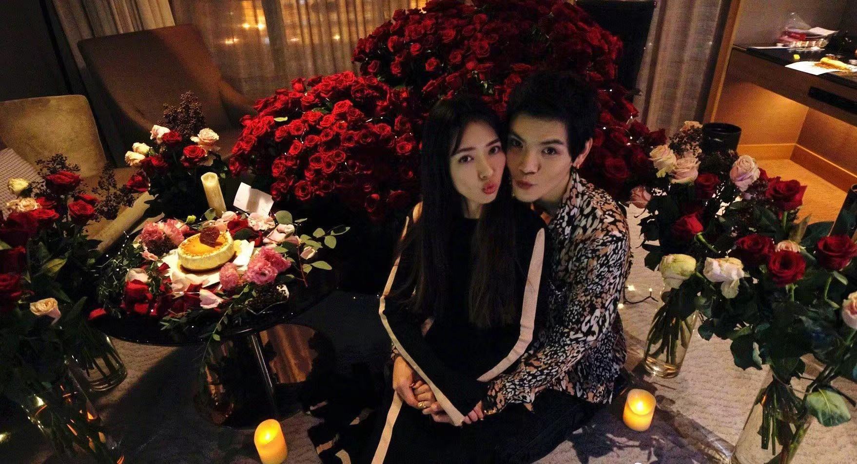 小两口也是很甜蜜,郭碧婷坐在向佐身上,不知道是谁给他们拍照,家里简直是花的海洋,很多玫瑰花,向佐和郭碧婷其实早在巴黎看秀的时候就认识了郭碧婷,一直追没成功,结果他们参加内地的综艺节目《最美的时光》,向太在里面神助攻,帮助儿子追到郭碧婷。节目才开播不久,两人其实就被曝光恋情,看来两人是在圣诞节开始交往的。
