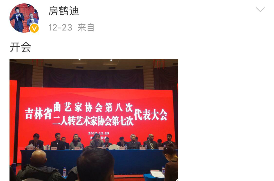 12月23日,郭德纲高徒房鹤迪发微博就写了两个字“开会”,然后又晒了一张图。