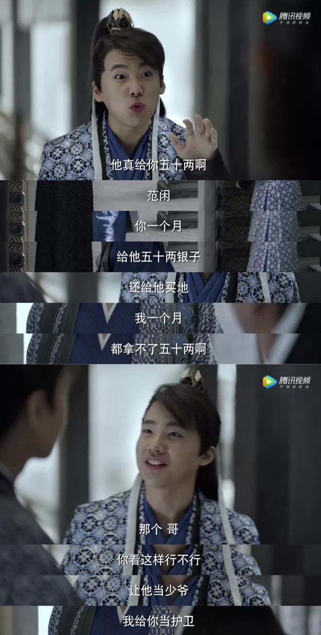 在得知范闲的护卫月薪五十两银子,还送牛送田地的时候,他震惊了。