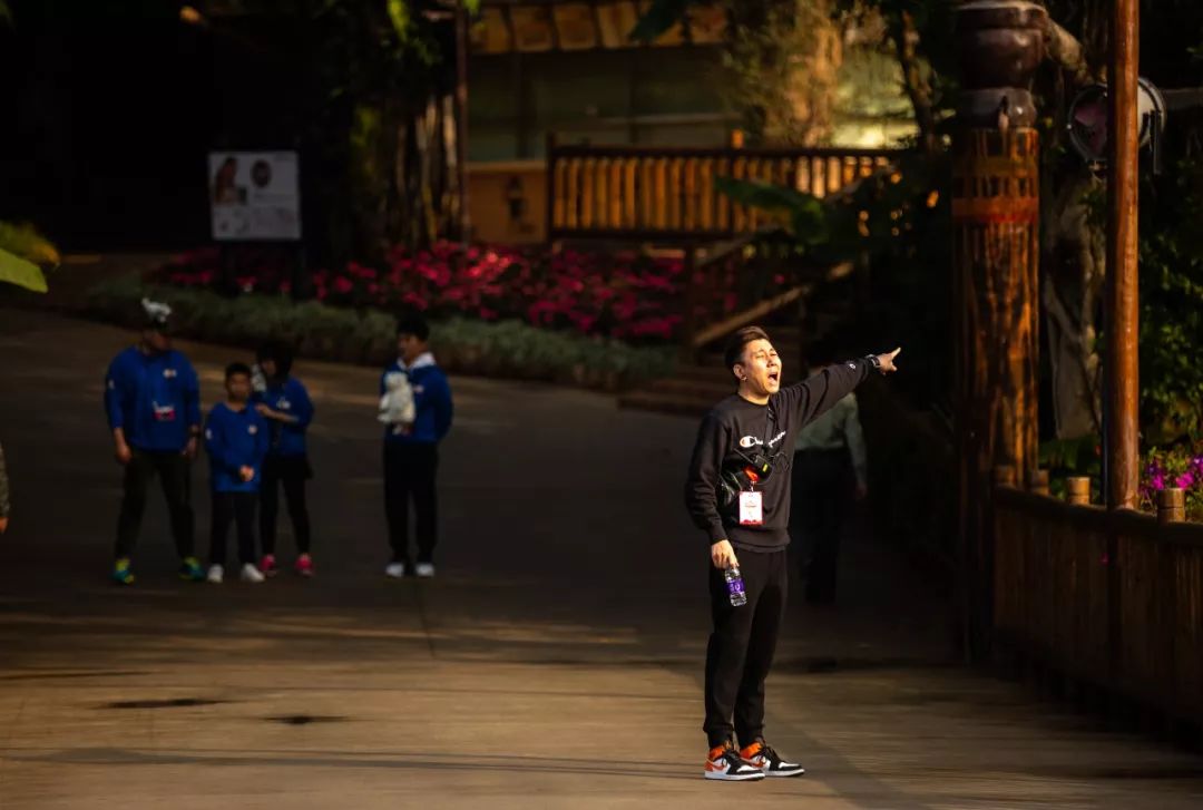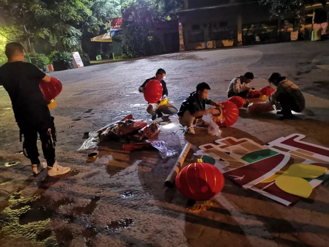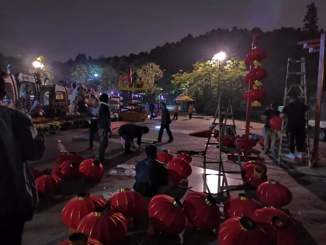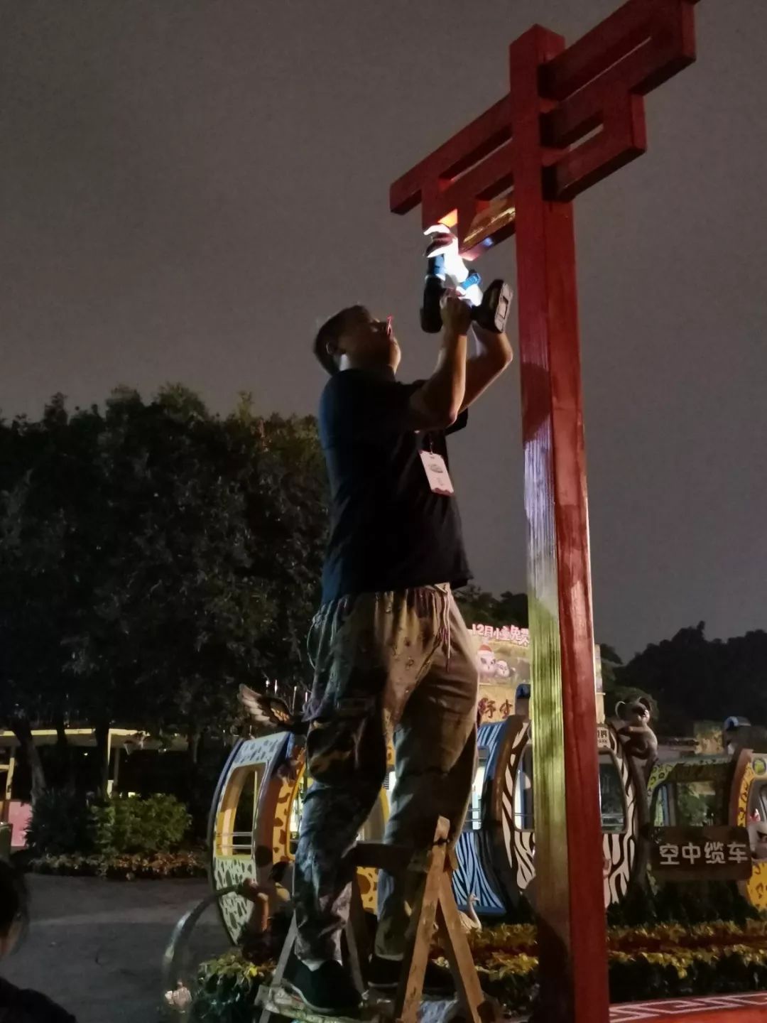 夜色中,道具老师还在园区里忙碌——由于时间紧张,布置拍摄场地的工作很多时候都在深夜甚至凌晨。