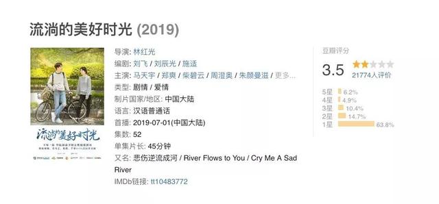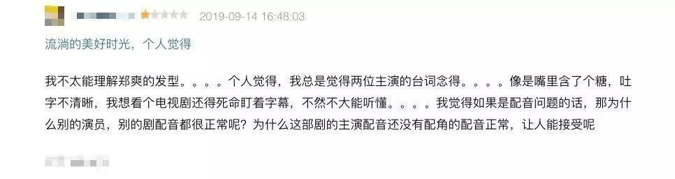 《流淌的美好时光》作为电视剧版,观众自然也是期待值满满。但是,电视剧开播之后,先是郑爽和马天宇的演技遭到质疑,台词功底太差,听不清台词,像嘴里含了个糖。豆瓣评分也低至3.5分,郭敬明的改编剧口碑再次扑了。