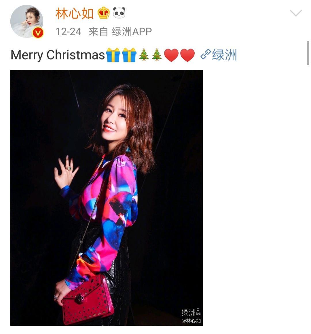 平安夜当天,林心如还在社交平台上晒出了一张自己的美照,画面中,林心如身穿印花雪纺衬衫优雅时髦,印花的颜色格外鲜艳亮丽,比较张扬凸显个性,尤其是比较成熟的女性,那是非常适合了!下搭一条黑色的皮裙,率性不失时髦感。而最亮眼的就是包包了,艳丽的玫红色非常洋气显活力,整体look瞬间变得精致高级了起来!