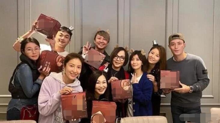 当天,朋友们还一同合照了,照片中,一会夫妻两分开站,一会又站在一起,画面不要太温馨呢!而且每个人手里还拿着一盒大大的礼盒,看来这圣诞节过得那是收货满满了!