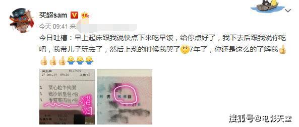 结婚五年,两人已经算得上的是老夫老妻了,生活中难免会发生互怼的情况。今日一早,买超在微博发文吐槽张嘉倪:“早上起床跟我说快点下来吃早饭,给你点好了,我下去后跟我说你吃吧,我带儿子玩去了,然后上菜的时候我哭了,7年了,你还是这么的了解我。”