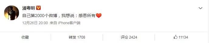 就在昨天,潘粤明还发了一条感性的微博:“自己第2000个微博,我想说:感恩所有”,不知他所说的感恩所有,包不包括尹姝贻对他的陪伴呢?