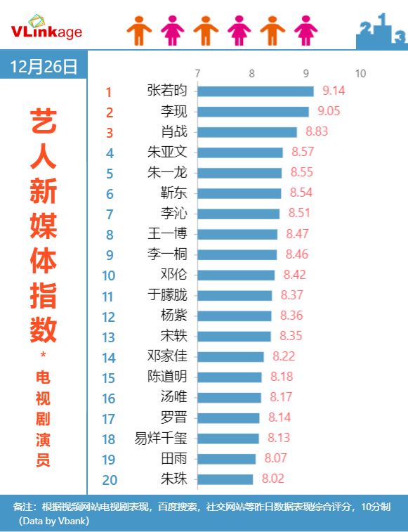 原标题:Vlinkage榜单 | 12月26日网播数据及艺人新媒体