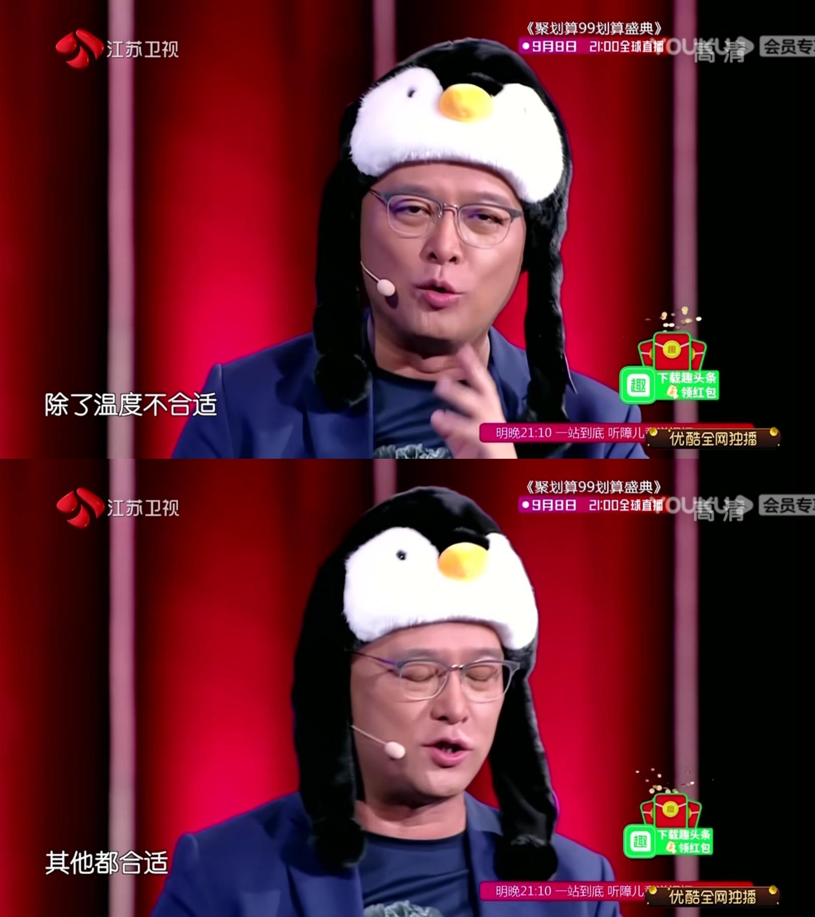 此外,他还特地为孟爷爷准备了企鹅帽子,当孟爷爷问“这么热的天你,你们忍心让我带吗?”时,没想到观众居然大喊想看!好吧,帽子好戴,这届观众有点难带~